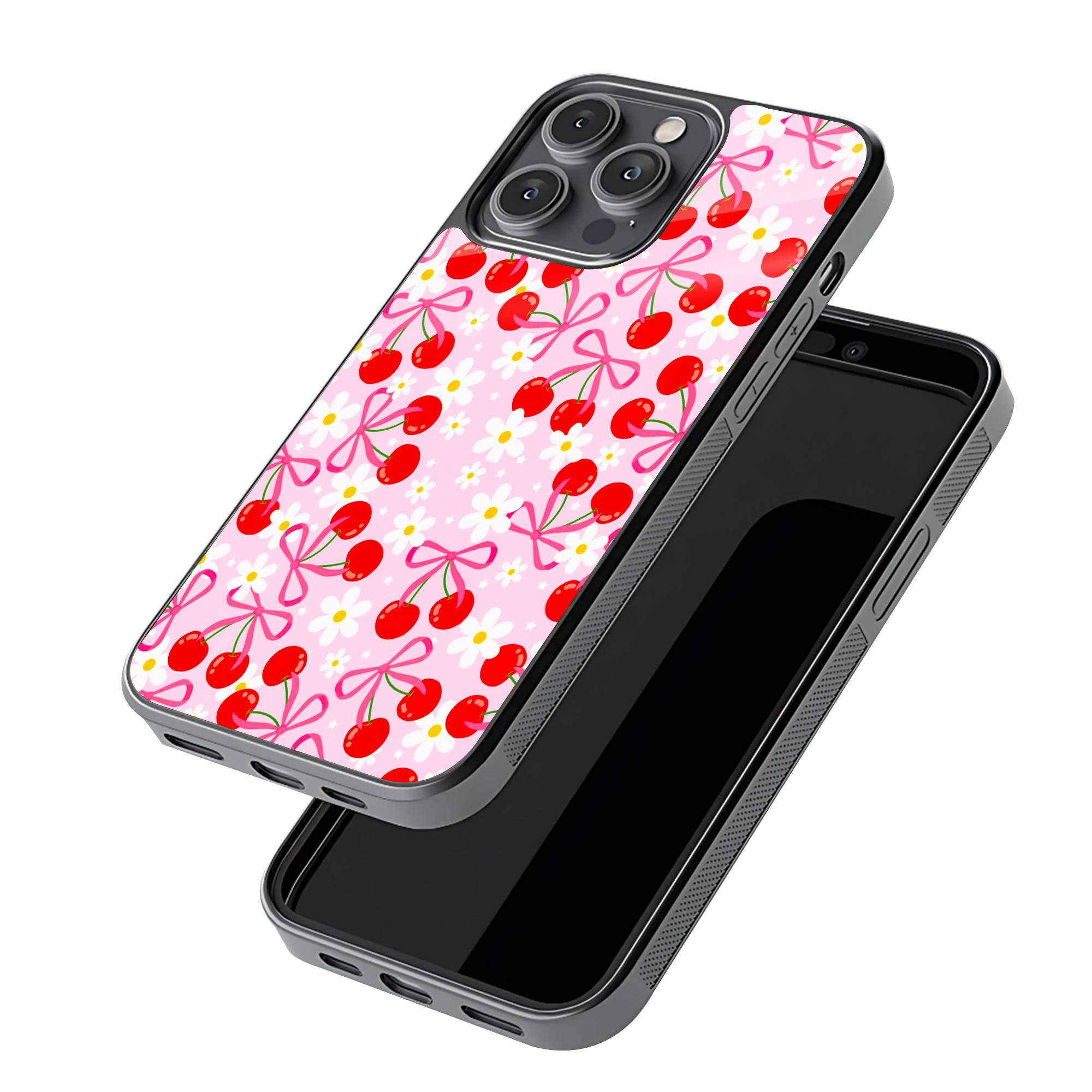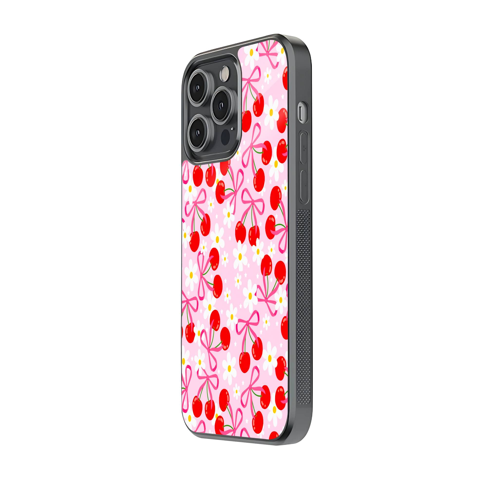 Cherry Daisy Pattern Glass Case