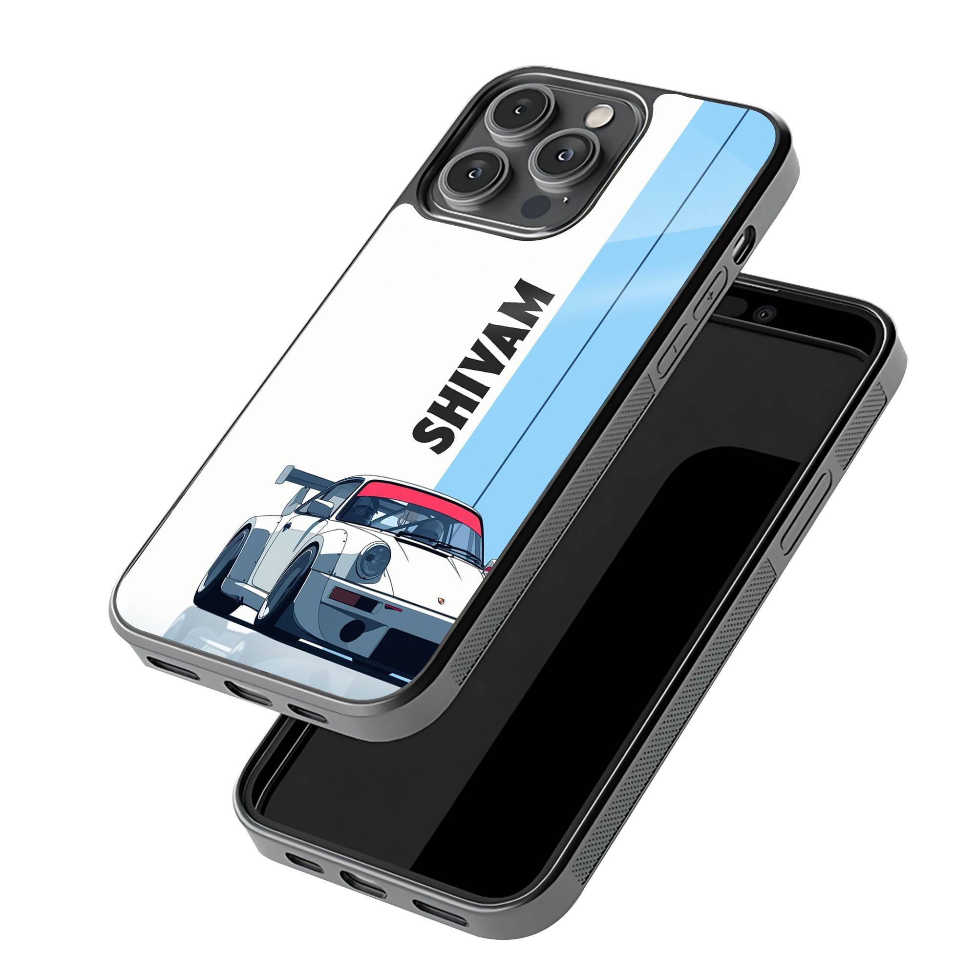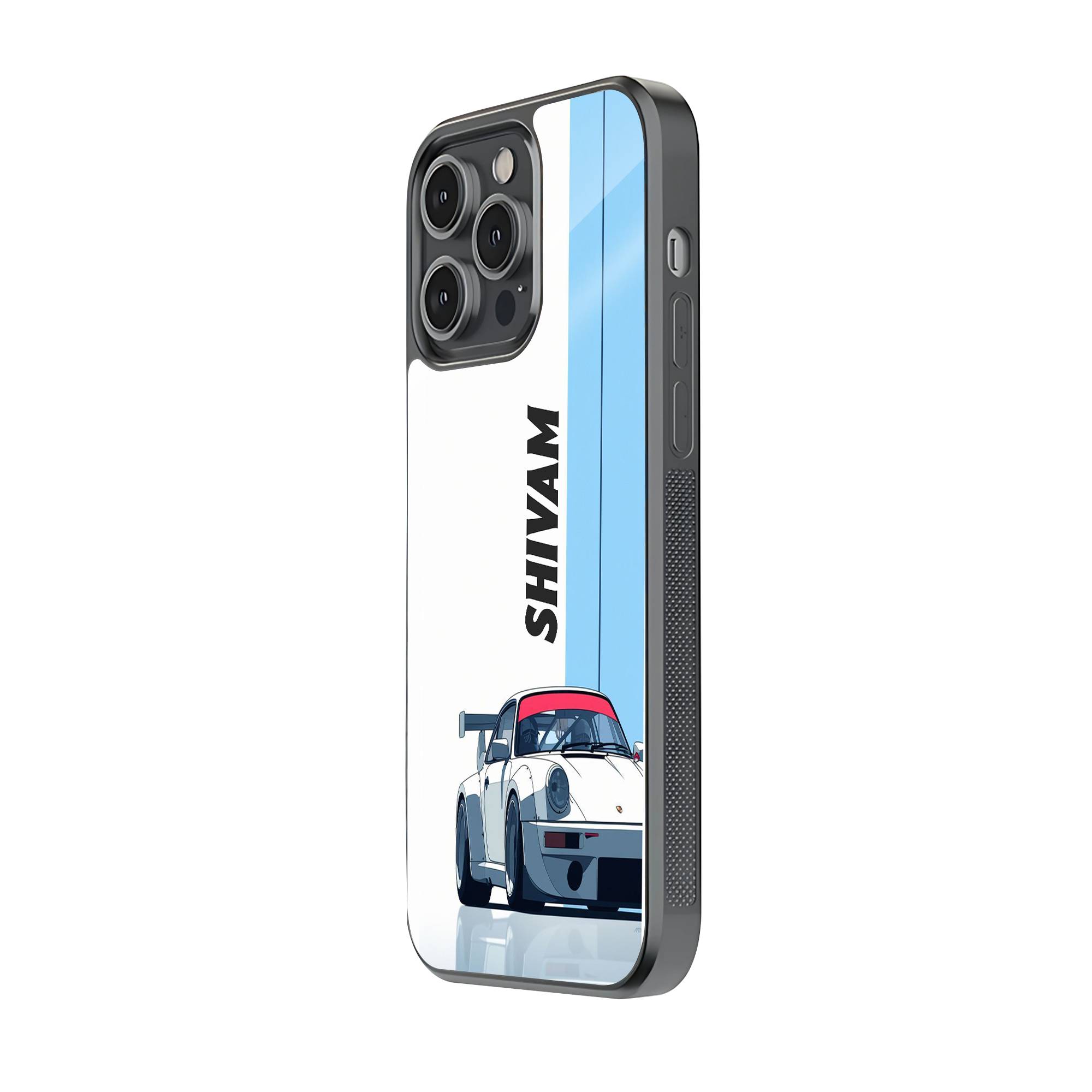 White Porsche Glass Name Case