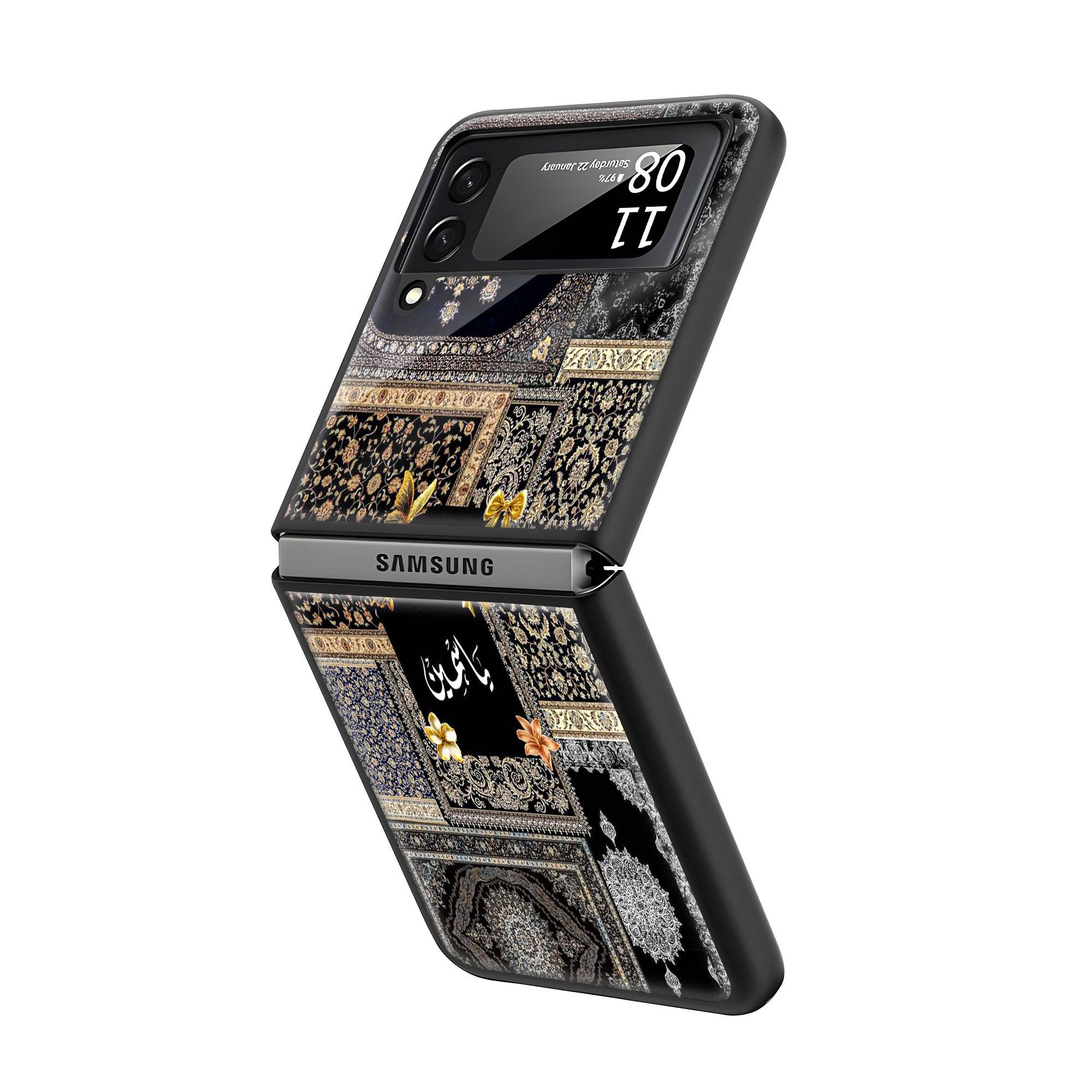 Black & Gold Patchwork Samsung Z Flip Glass Case