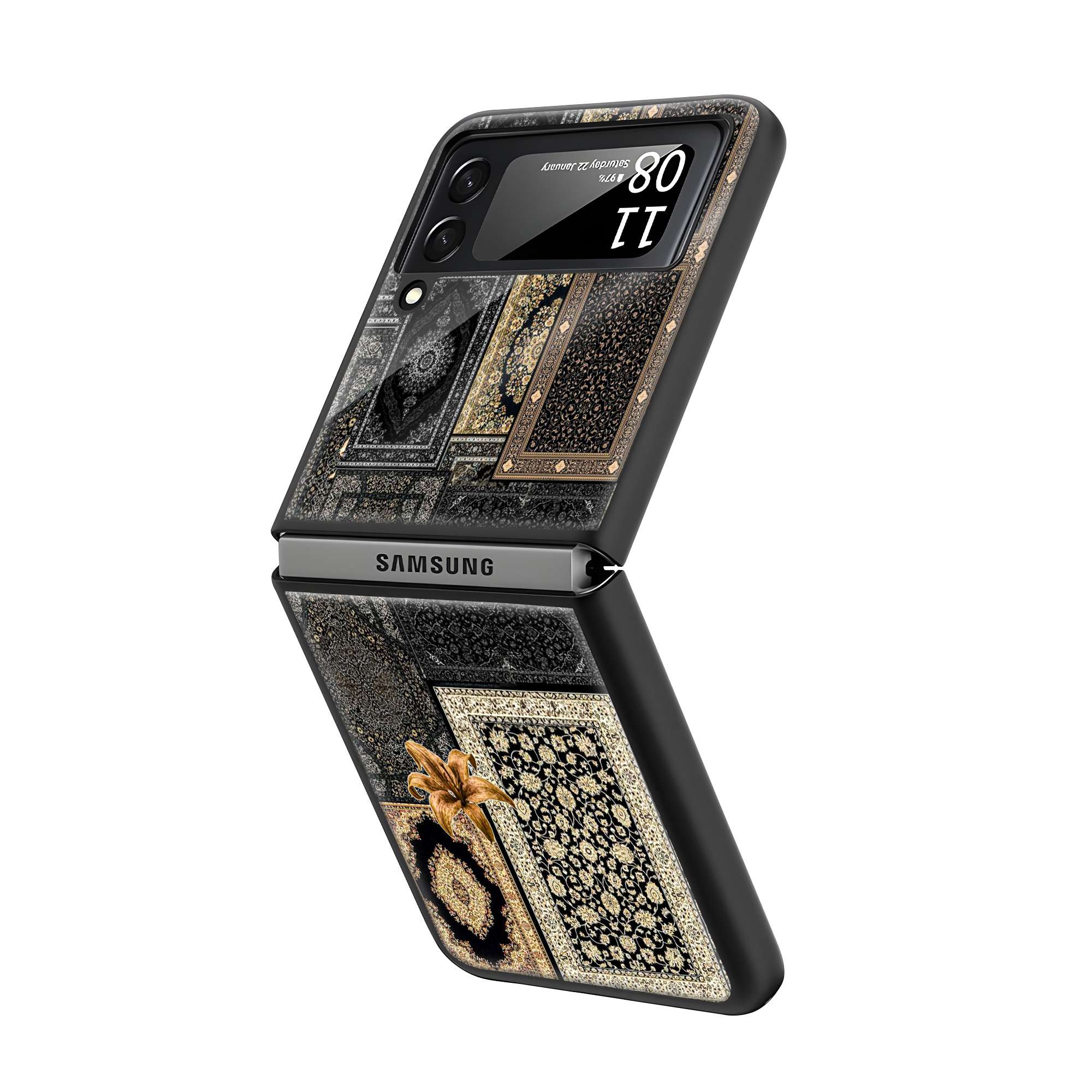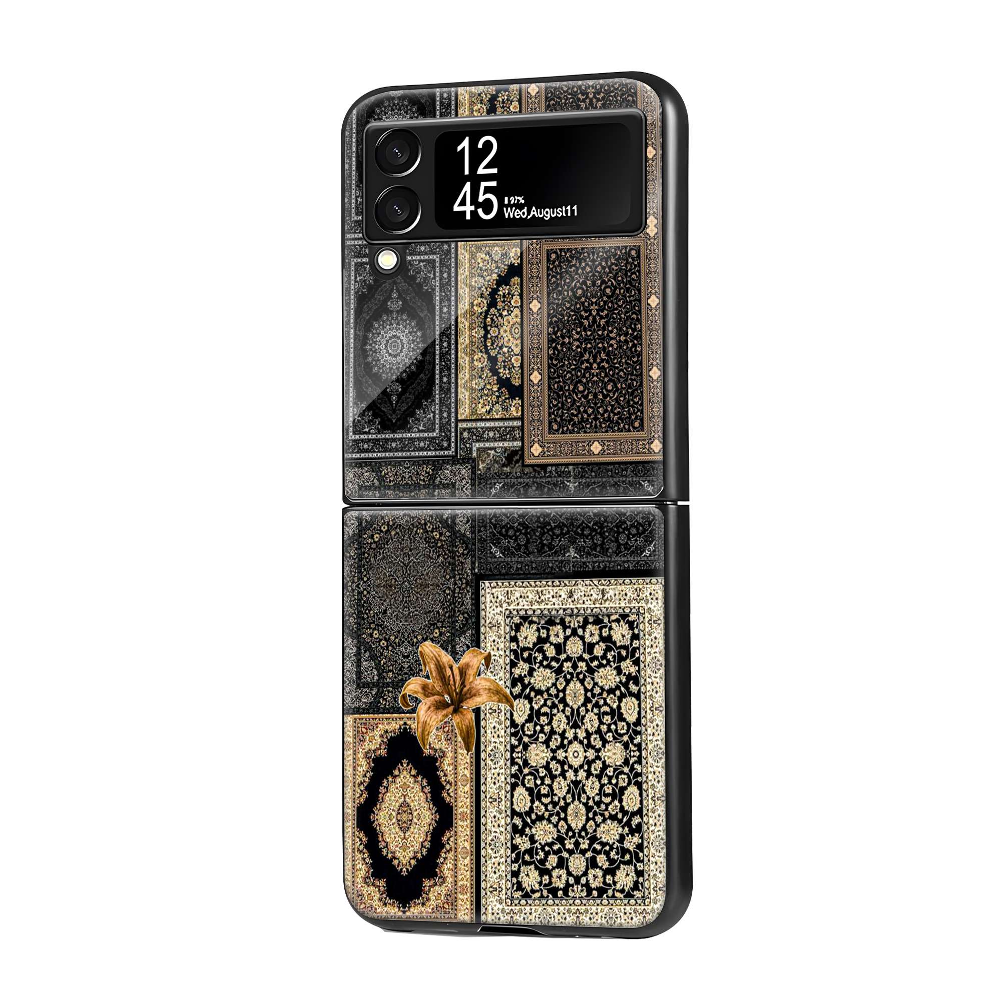 Black Persian Carpet Samsung Z Flip Glass Case
