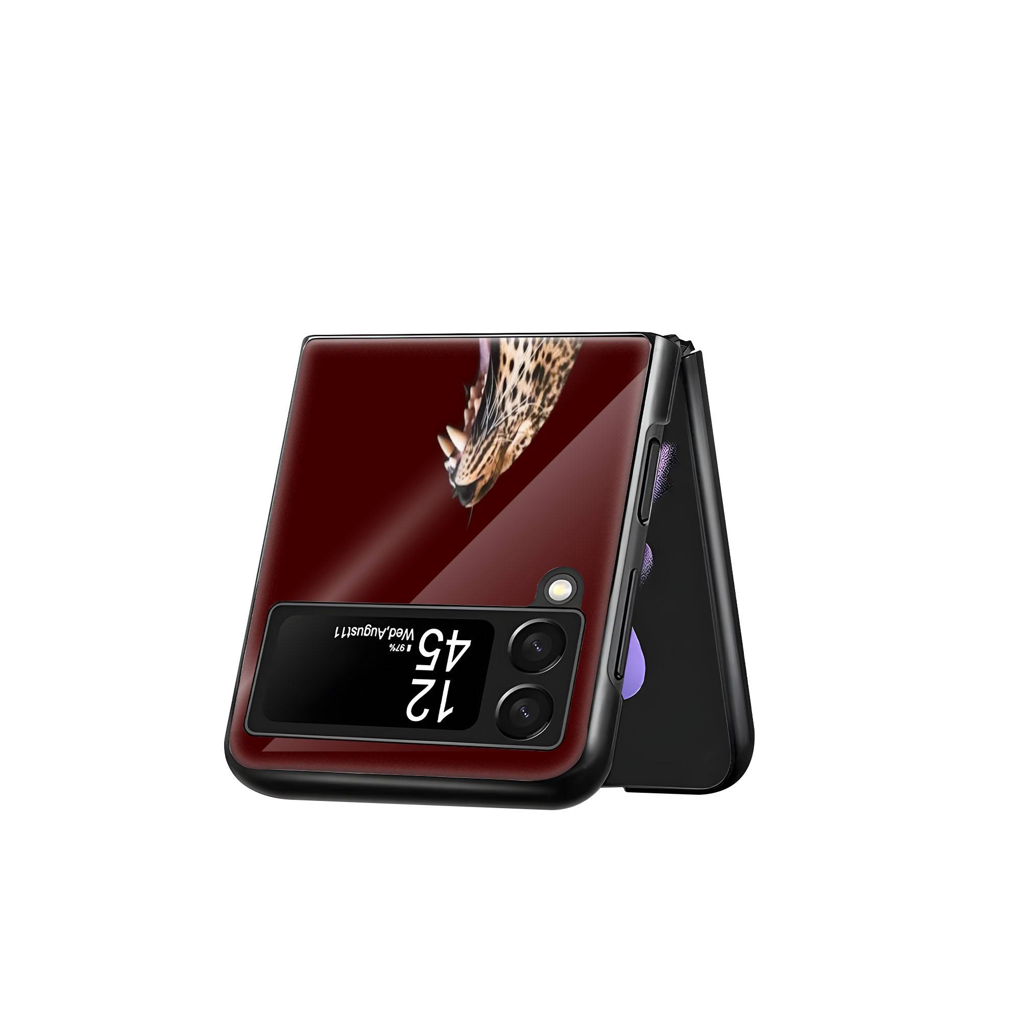 Leopard Minimalist Art Samsung Z Flip Glass Case