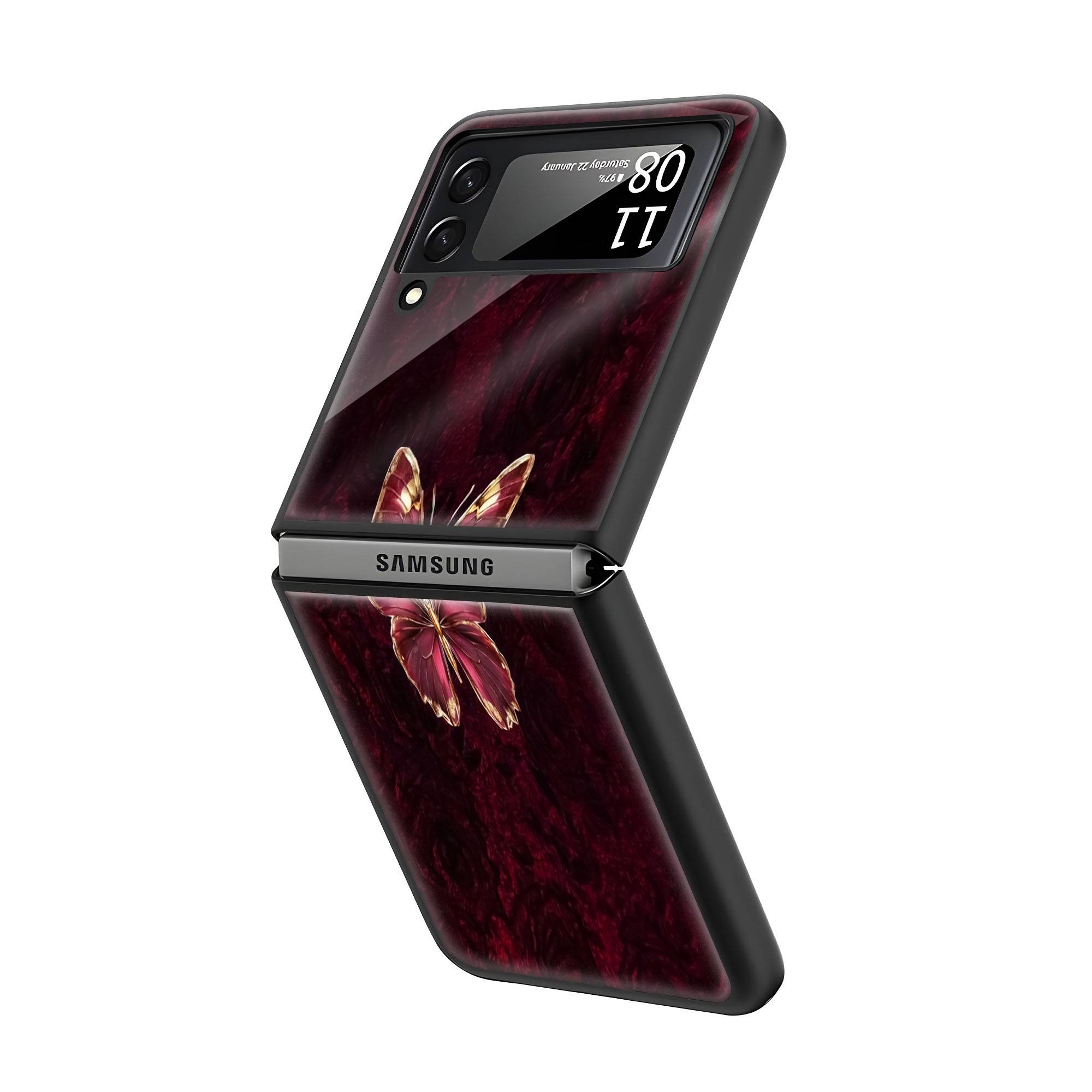 Moody Red Butterfly Samsung Z Flip Glass Case