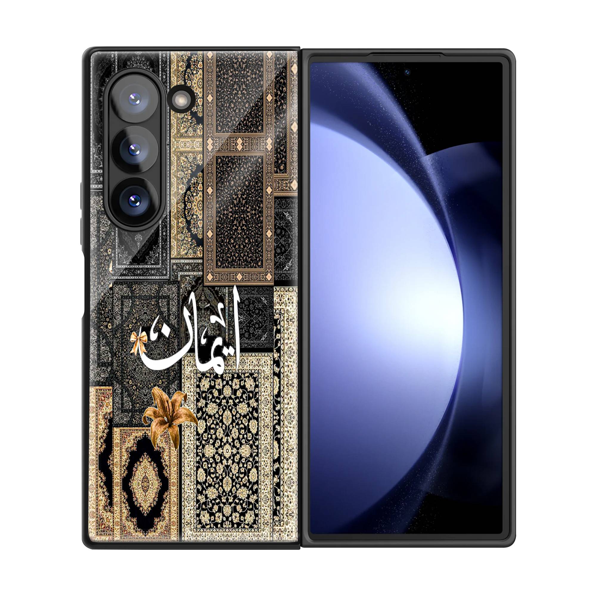 Black Persian Carpet Samsung Z Fold Glass Case