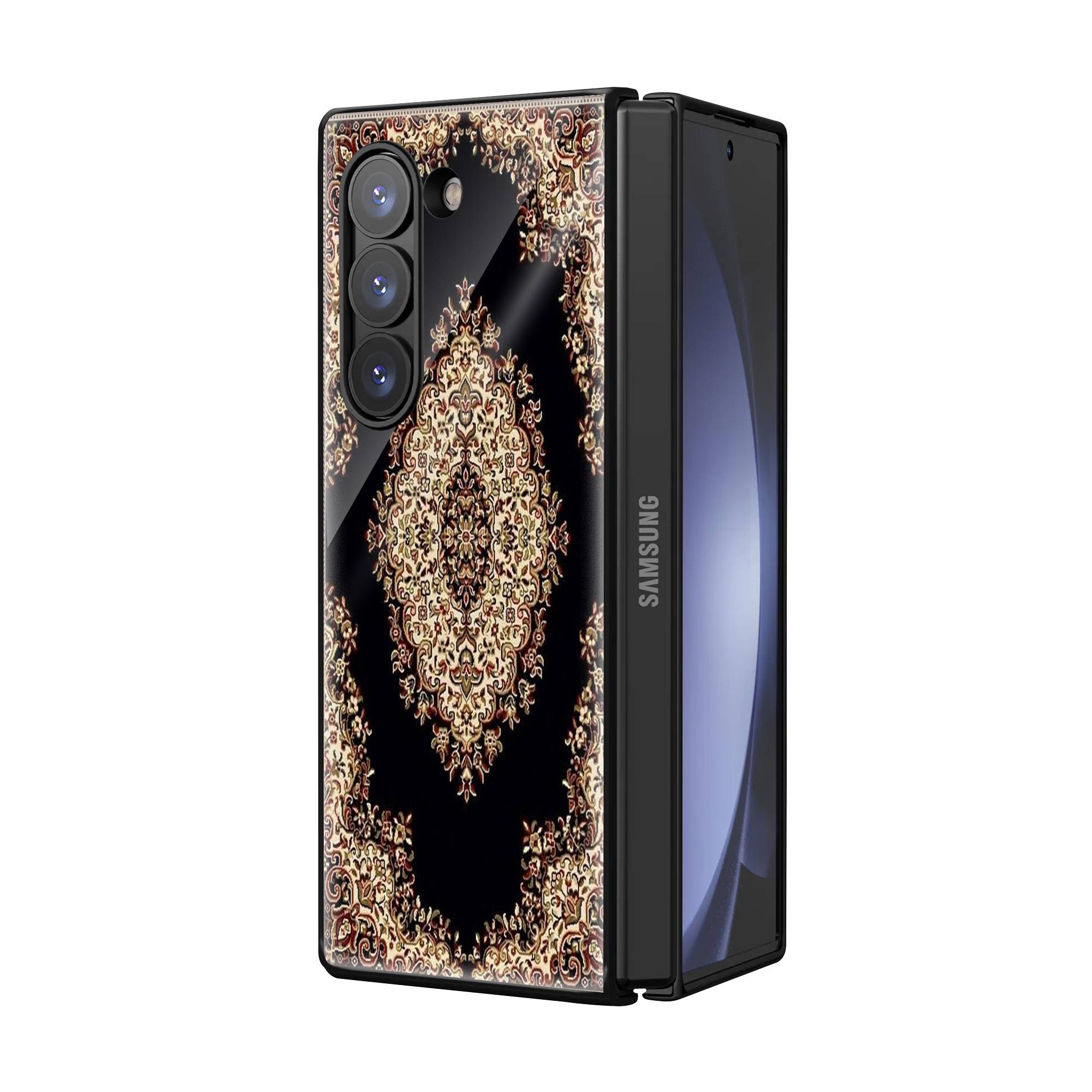 Black Persian Rug Pattern Samsung Z Fold Glass Case